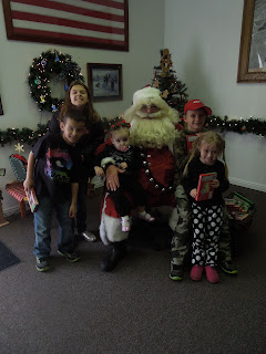 What a FUN day!!! We headed over to the City Park to see Santa! They had hot chocolate and doughnuts while we waited for Santa. Then around noon we heard the firetruck as loud as could be.... It was Santa's arrival! The kids were so excited! Emma was a little nervous but more excited to see him! We waited in line for about maybe 35 to 40 mins. Once we got up to Santa they all told him what they wanted! Abby went up with Emma at 1st then she was not scared at all. When we left she wanted to go back and tell him more what she wanted but there was a huge line....I thought Hazel was going to scream when I put her on Santa's lap nope she was just fine! Excited to tell Santa her list. They all got Carmel Chocolate Santa's as you can see in the last picture Hazel enjoying the Chocolate from Santa!!! Merry Christmas!